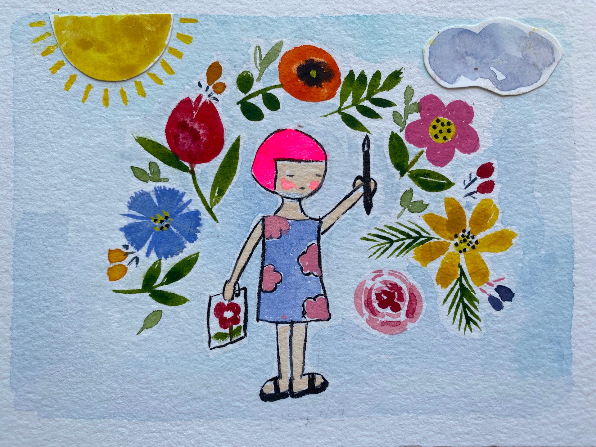 From June 14 - 18, You will receive daily emails from me with video tutorials where I will help you draw and paint one card design each day. You will join me in a zoom workshop where we will make a sheet of paper filled with flowers and foliages you designed in the first five days of our daily retreats.